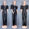 Women's One-Shoulder Stacked Sleeve Jumpsuit Party Dress 5813
