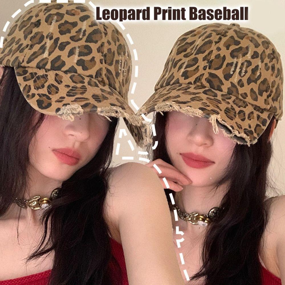 Retro Distressed Leopard Print Baseball Hat Adjustable Sun Hat Trendy Cool Baseball Caps Women