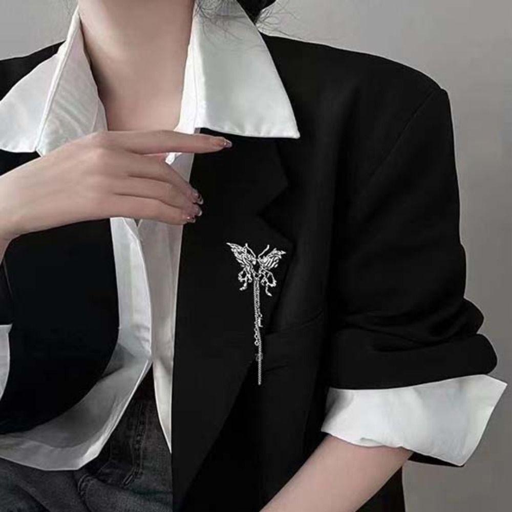 1Pair Wing Metal Butterfly Brooches Rhinestone Butterfly Tassel Badge Pin Suit Accessory