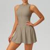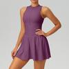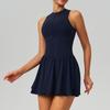 Cloud-feel Dual-Layer Anti-Exposure Tennis Dress with Stand-up Collar (9094)