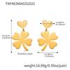 Oumeka 18k Gold-Plated Stainless Steel Jewelry Set: Heart & Four-Leaf Clover Earrings, Ring, and Necklace.