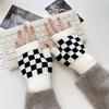 New Black and White Checkerboard Plaid Gloves Half Finger Gloves for Couples Knitted Typable Student Fingerless Warm Gloves