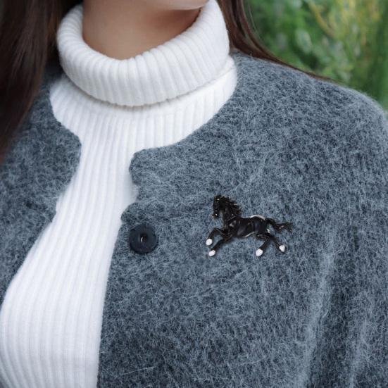 Oil Dripping Running Horse Brooch Sweater Cardigan Coat Business Suit Zodiac Animal Lapel Pin Men Women Fashion Jewelry Clothing Accessories