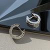 Retro Inlaid Silver Diamond Stud Earrings - Women's High-End Luxury French Hoops & Ear Cuffs