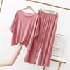 Experience ultimate comfort and style with this luxurious pajama set, perfect for summer and autumn. Crafted from a blend of cotton and modal, the set feels incredibly soft and silky against the skin, ensuring a cool, breathable wear. The short sleeve design adds a touch of elegance, making it versatile enough to be worn both indoors and out. Available in plus sizes, it caters to a variety of body shapes, offering a flattering fit for everyone. Enjoy the seamless combination of functionality and chic design with this must-have wardrobe addition.