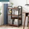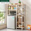 Multi-Layer Floor-Standing Adjustable Storage Rack with Trash Can Holder for Kitchen Use