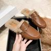 Autumn/Winter 2025 Women's Fuzzy Mule Slippers with Chunky Heels and Round-Toe Design