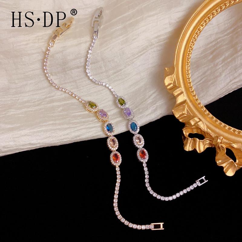 French Light Luxury Fashion Full Diamond Color Zircon Bracelet Exquisite Versatile High Sense Adjustable Jewelry