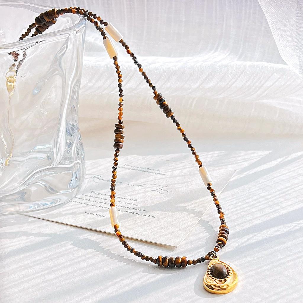 Wind High Quality Maillard Natural Tiger's Eye Stone Shell Mini Collarbone Chain Necklace for Women