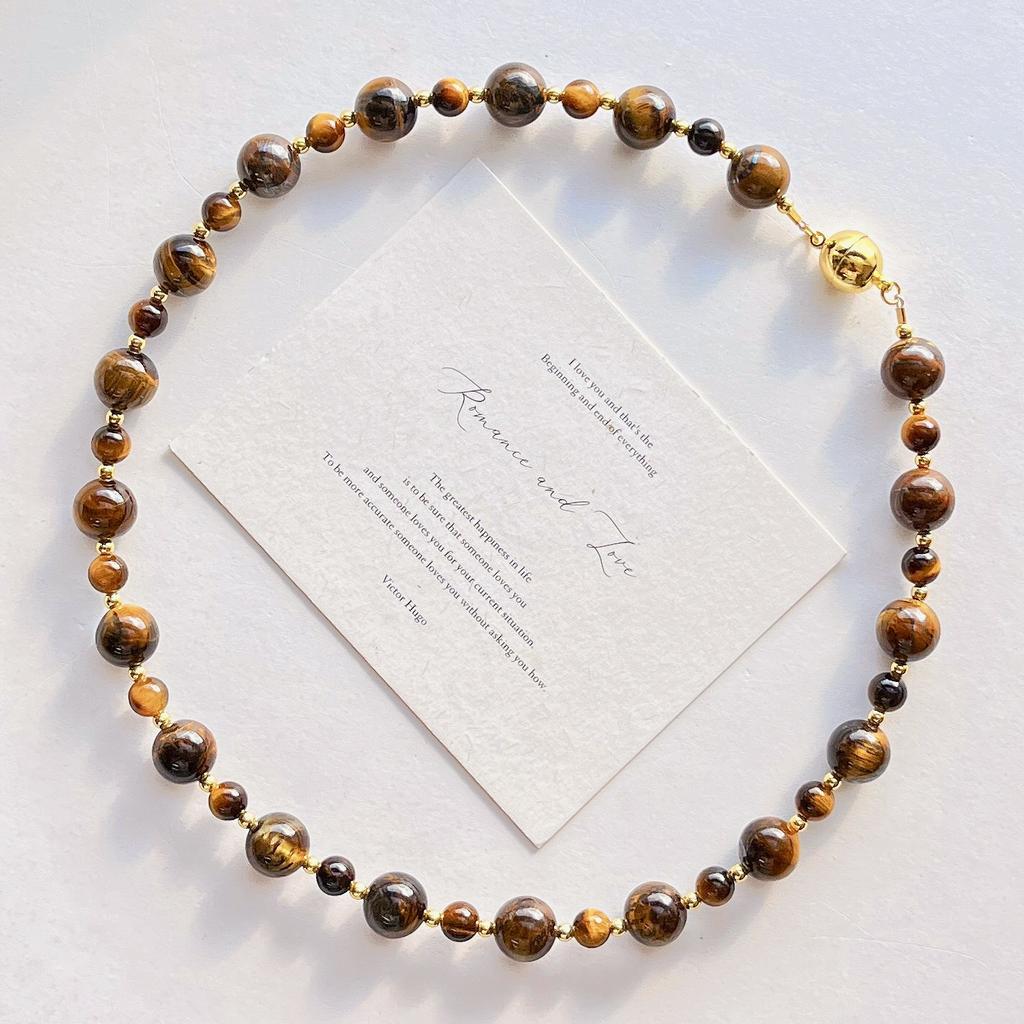 Maillard Natural Boutique Tiger's Eye Beaded Necklace Women's Autumn and Winter Clavicle Chain Light Luxury Sweater Chain Fidelity Support Recovery