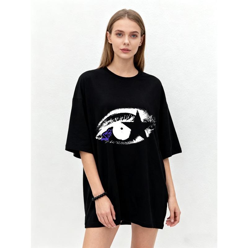 Oversized T-Shirt Black Eye Graphic Print Casual Wear