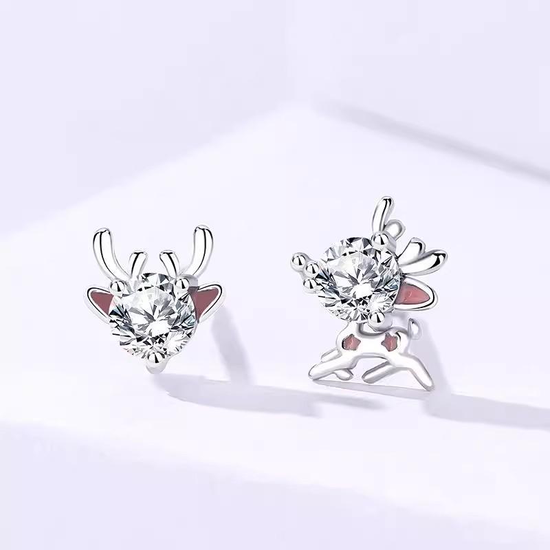 S925 Sterling Silver Little Deer Antler Stud Earrings - Light Luxury Christmas Jewelry Gift
