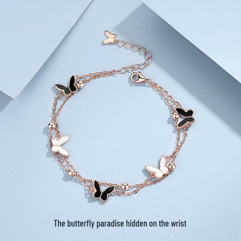 Butterfly 925 Silver Bracelet for Women - 18k Rose Gold, Niche Design, Ideal Student Gift for Christmas or Valentine's Day.