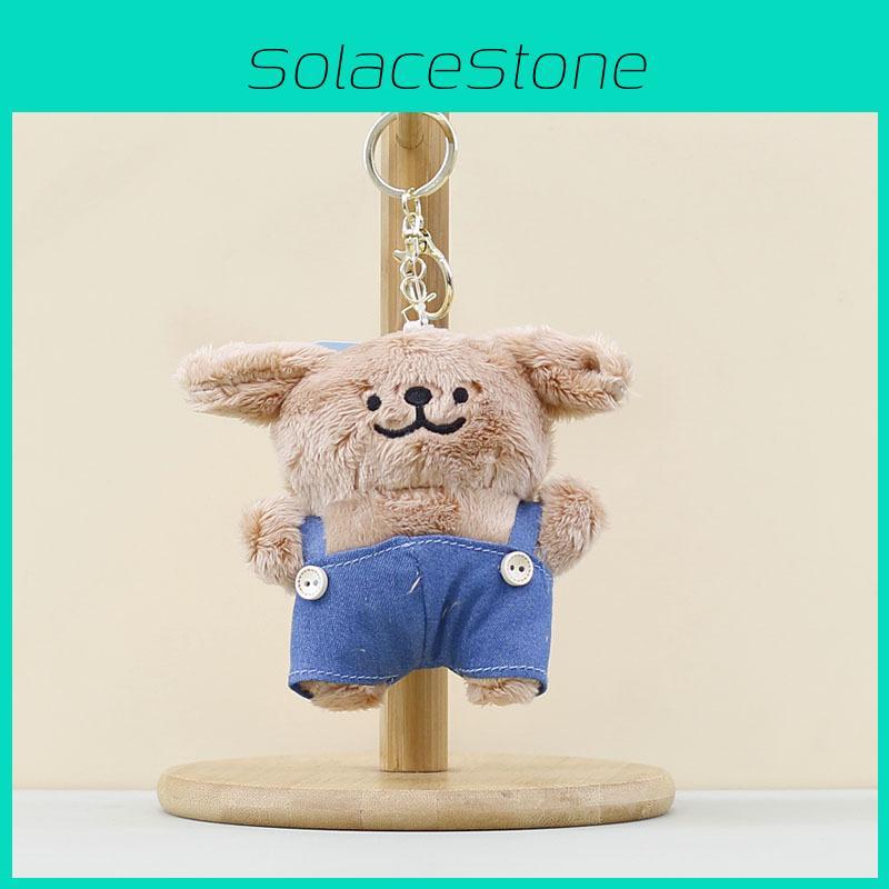 White Overalls Dog Plush Keychain Stuffed Pp Cotton Filling Bag Decoration