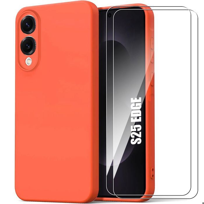Coque de Protection - BOOLING - pour Samsung Galaxy A07 - Silicone Anti-Rayures Orange - 2 Verres Trempés