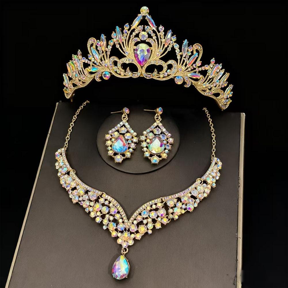 Luxurious Bride Accessories Three Piece Set Wedding Crown Headwear Necklace Earrings Wedding Dress and Evening Gown Accessories