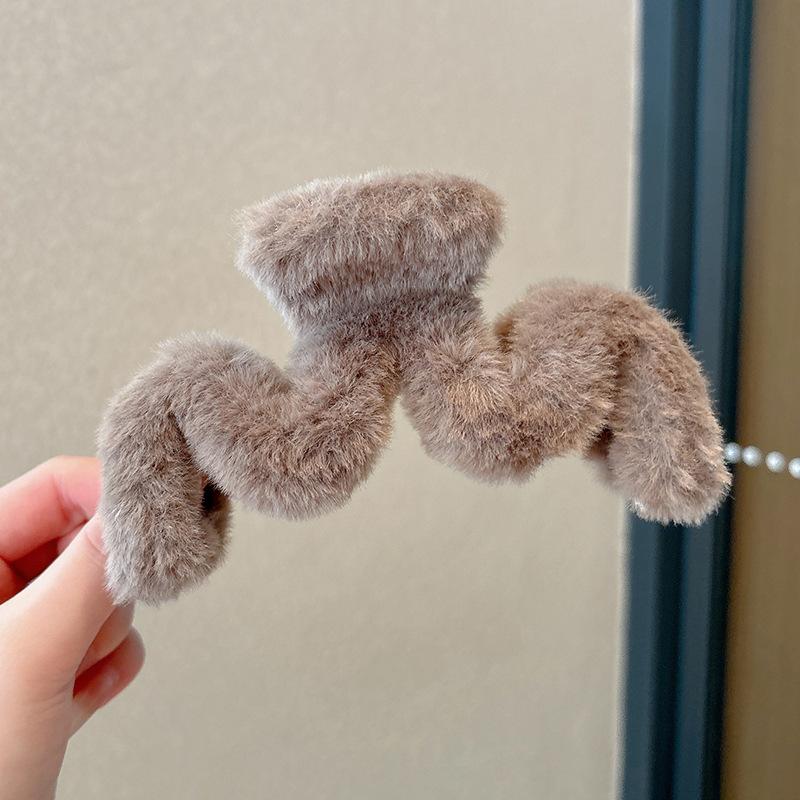 Fashion Autumn and Winter Plush Grab Clip Women's Winter Back Head Hair Shark Clip Hairpin Hairpin Large Hairy Hairpin Headwear