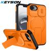 KEYSION Shockproof Armor Magnetic Case for iPhone 16e Silicone+PC Slide Camera Protect Kickstand Wireless Charging Phone Cover