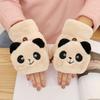 Winter Plush And Thick Warm Gloves For Women Covering Face And Squinting Eyes With Ears Half-Finger Cute Plush Flip Gloves For Students
