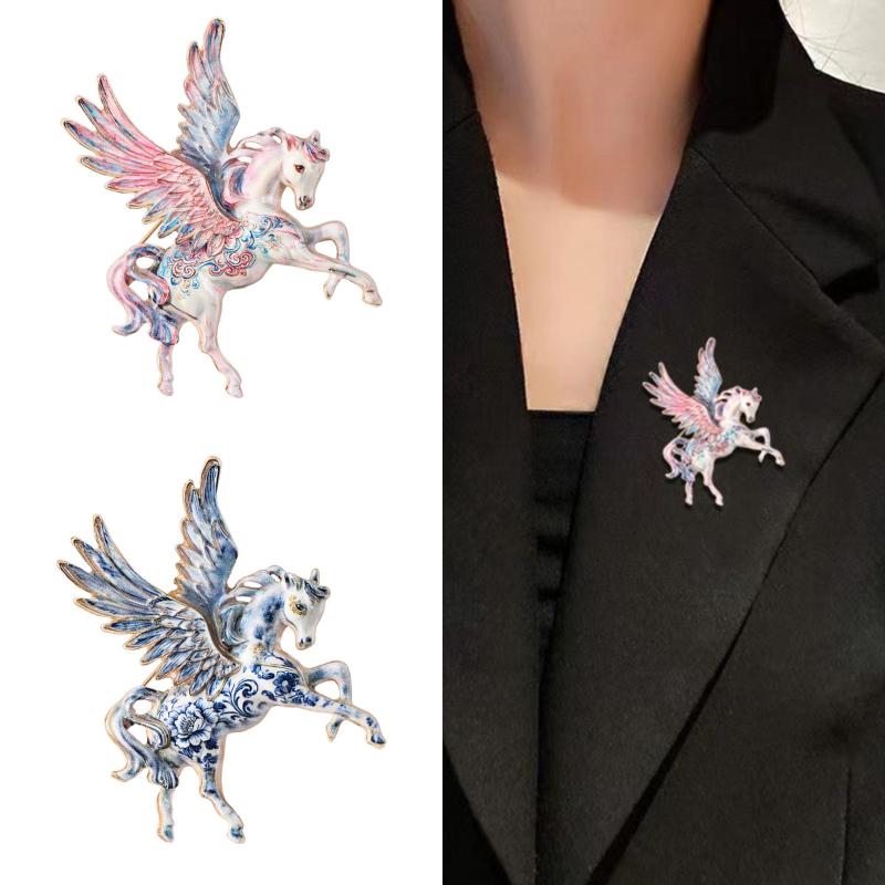 Beautiful Flying Horse Brooches For Women Men Enamel With Big Wings Elf Animal Party Office Brooch Pins Gifts