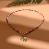 Boho Style Colorful Stone Choker 4mm Beads Beads Chain Necklace Evil Eye Charm Pendant Women Girls