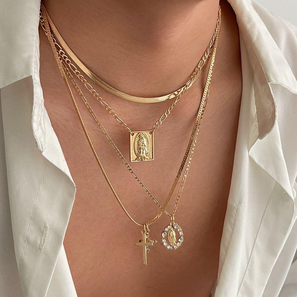 Love Bowknot Multilayer Pendant Necklace Punk Y2K Metal Necklace Unique Beaded Necklace Women