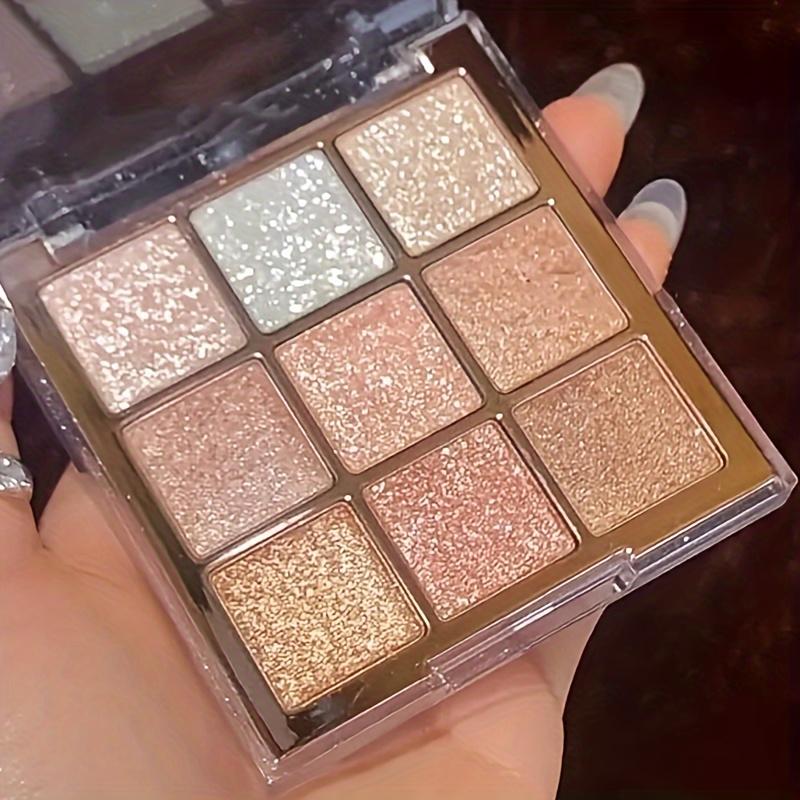 9-Color Shimmering Eyeshadow Palette | Plant-Based Squalane, Mixed Color System, Matte & Metallic Finish - Versatile for Daily & Party Looks