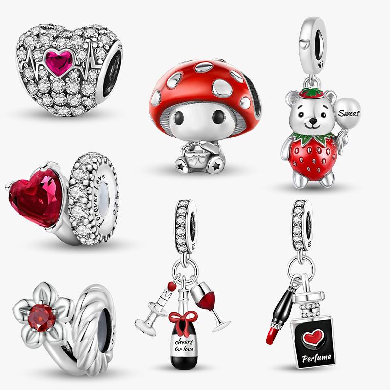 Copper Mushroom Strawberry Bear Love Heart Red Charms Beads Fit Original Bracelets Bangles Jewelry Gift For Women