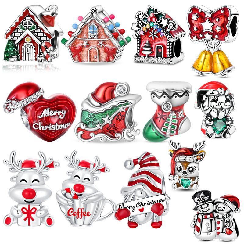 Copper Santa Claus Charms Bead Christmas House Dangle Pendant Fit Bangle Bracelet Necklace Diy Jewelry