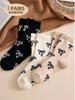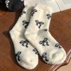 Australian Wool Socks for Women, Autumn and Winter, Fleece-Lined, Thickened, Warm, with Bow, Home Maternity Socks, Plush Floor Sleep Socks