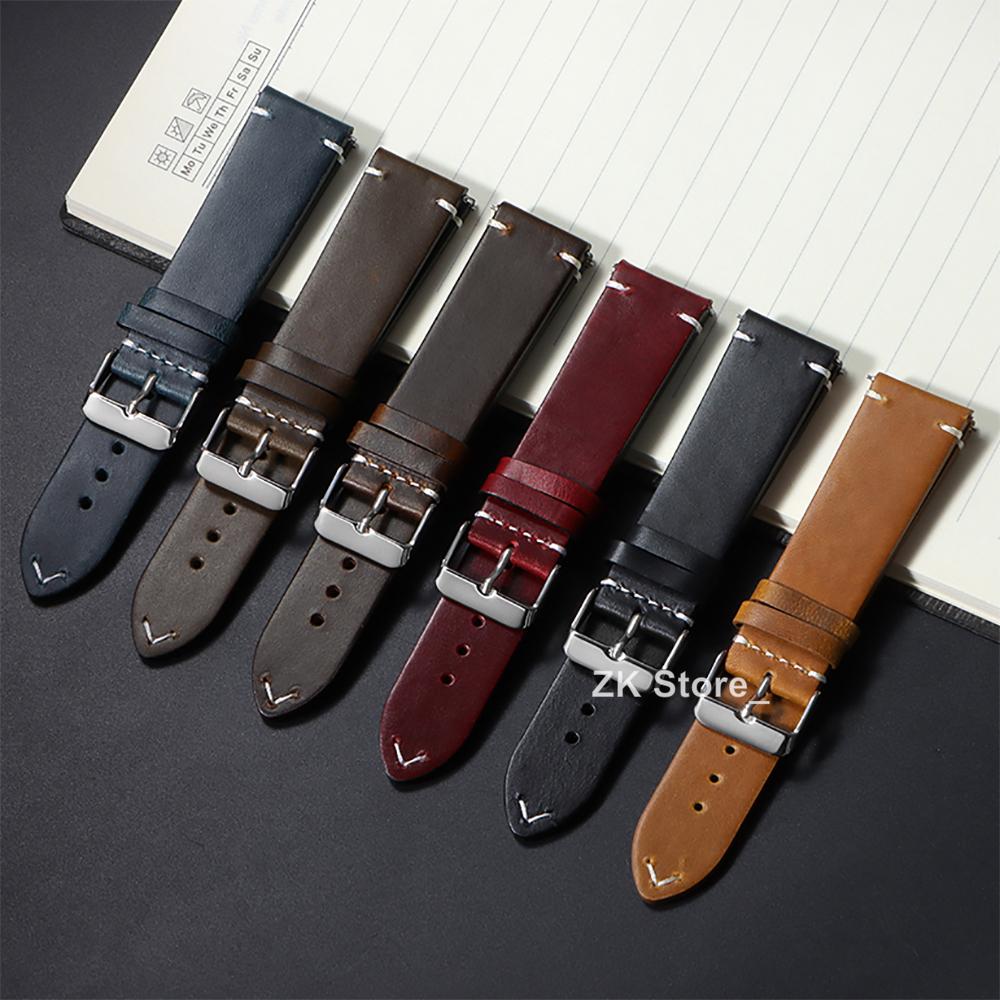 Vintage Oil Wax Genuine Leather Watch Strap 18mm 19mm 20mm 22mm Quick Release Watchbands for Samsung Galaxy Watch Band Bracelet