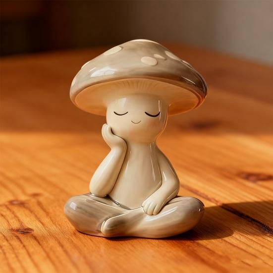 Zen Meditation Mushroom Sculpture Resin Mushroom Figurine for Living Room Home Office Desk Patio Garden Decor