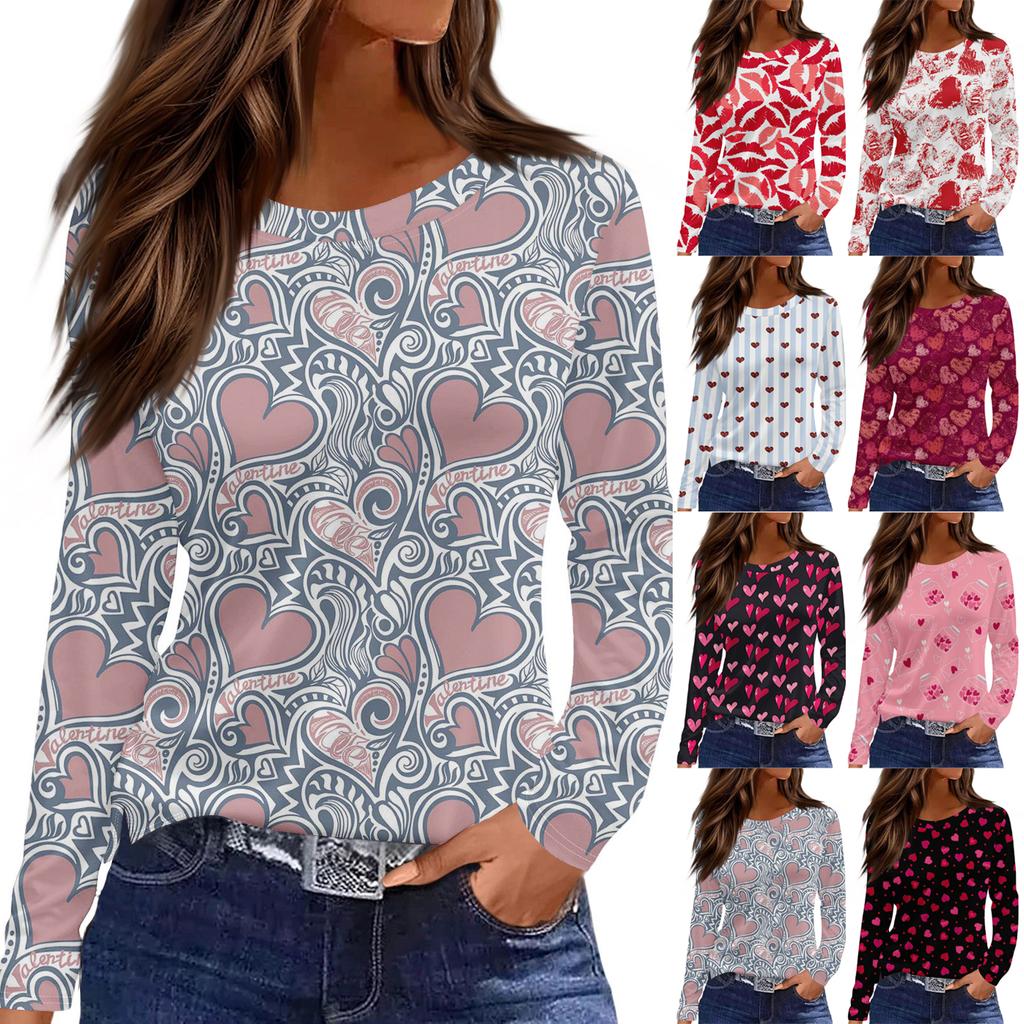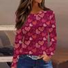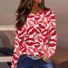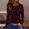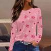 Women's Fashion Casual Slit Hem Round Neck Long Sleeve Loose Printed T-Shirt Ladies Top