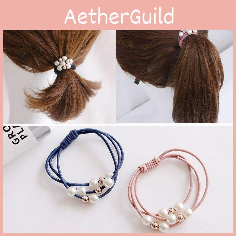 Korean Version Of The Three-strength Rubber Band High-elastic Pearl Head Rope For Women And Girls