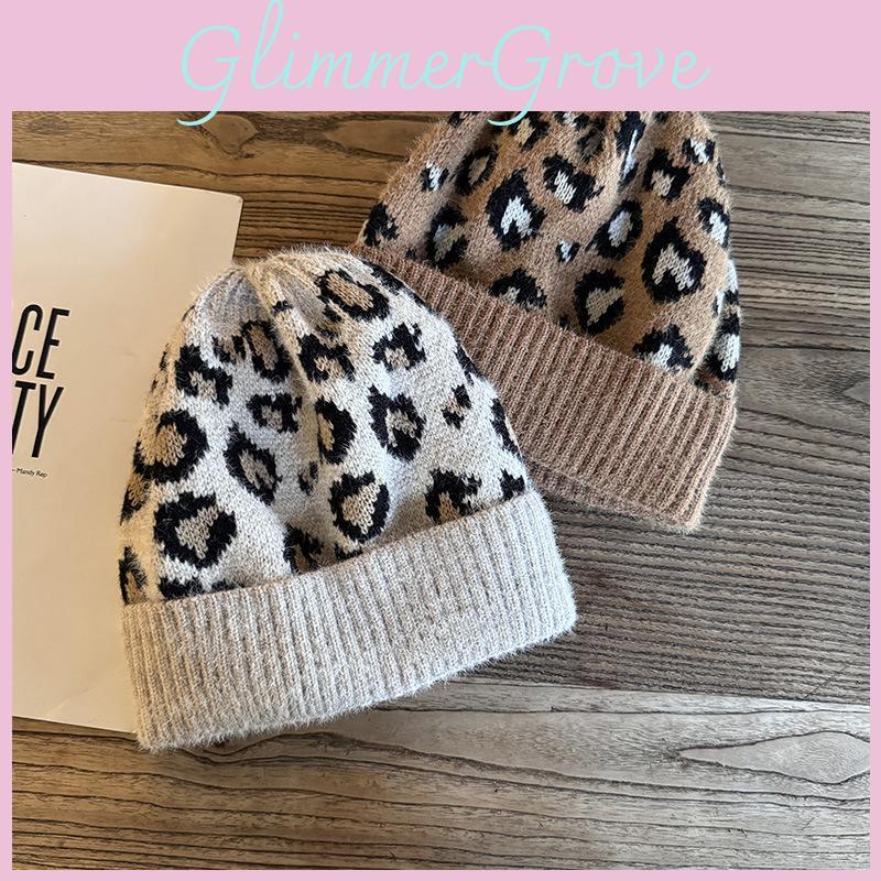 Leopard Print Knit Hat For Women Winter Warmth Breathability Fashionable Gift For Teens