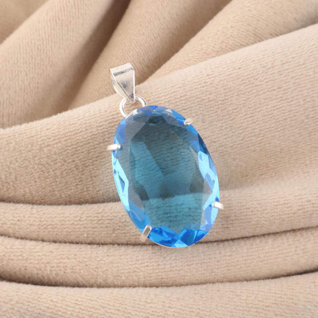 Swiss Blue Topaz Gemstone 925 Sterling Silver Handmade Partywear Pendant For Women, Topaz Pendant For Mother PP-64-9