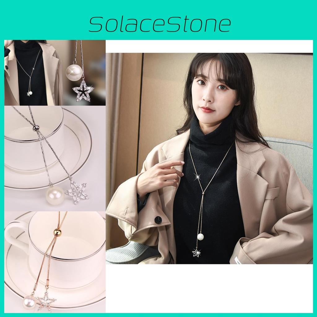 Fashionable Long Chain Star Shaped Pendant Necklace With Pearls Sparkling Design
