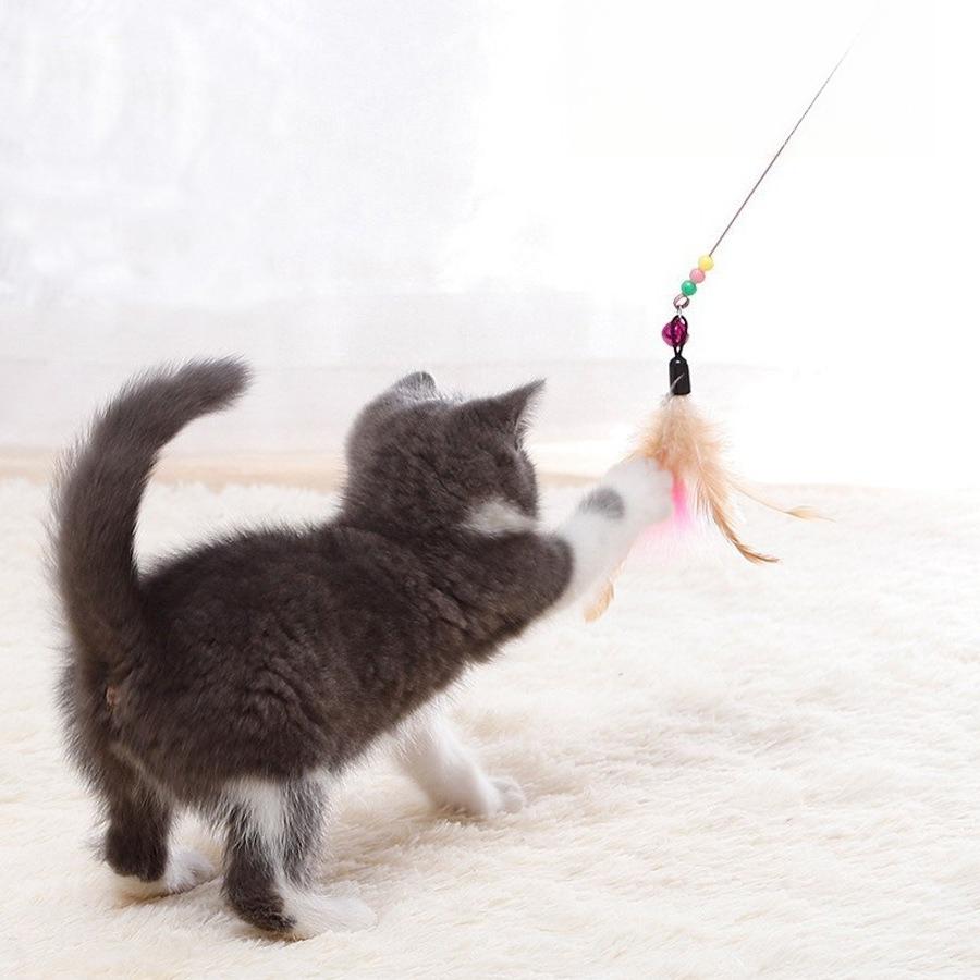 Cat Toys Long Rod Steel Wire Feather Bells Bite-resistant Handheld Cat Teaser Self-Hi Bored Cat Toys Pet Toys