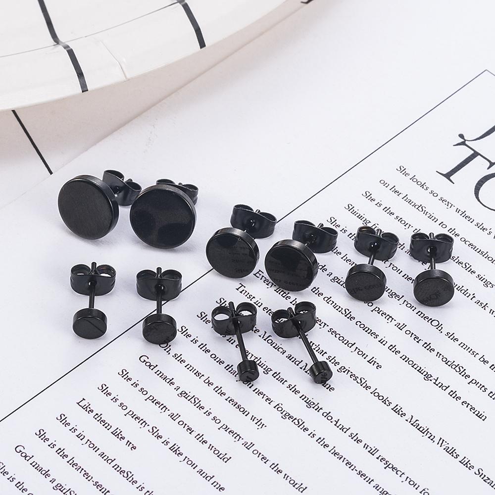 Fashion Women Men Black Round Stainless Steel Simple Ear Studs Earrings 5 Size Punk Earring Jewelry