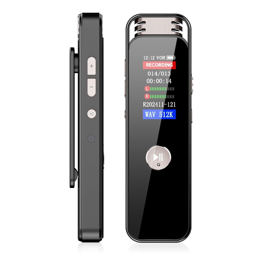 This compact voice recorder features long-duration recording, a 1536kbps recording speed, noise-canceling, dual microphones, a color LCD screen, and a built-in speaker. It's perfect for meetings, business, lectures, classes, interviews, language learning, and more. It's a great gift for meetings, classes, business, lectures, interviews, and language learning. It's compact, slim, and concealed, allowing you to record and record for hours, even when you're not in the room. It's also ideal for recording videos, interviews, and other activities. It's also great for recording videos, recording videos, and recording audio. It's also great for recording videos, recording videos, and recording audio. It's also great for recording videos, recording videos, and recording audio. It's also great for recording videos, recording videos, and recording audio. It's also great for recording videos, recording videos, and recording audio. It's also great for recording videos, recording videos, and recording audio. It's also great for recording videos, recording videos, and recording audio. It's also great for recording videos, recording videos, and recording audio. It's also great for recording videos, recording videos, and recording audio. It's also great for recording videos, recording videos, and recording audio. No earphones required. Compatible with Android, Smartphone Transfer, Metal Construction, Eavesdropping Device, Recorder, for Seniors and Students, 0.96-inch Display