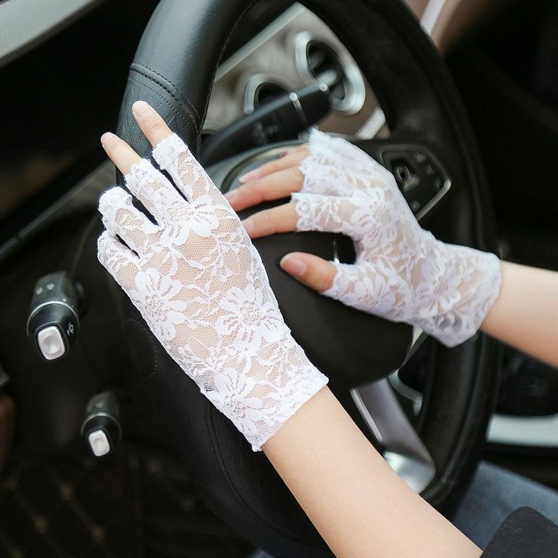 Black Fingerless Sexy Lace Gloves Women Sun Protection Gloves Women Driving Mittens for Bride Ladies Half Finger Fishnet Gloves