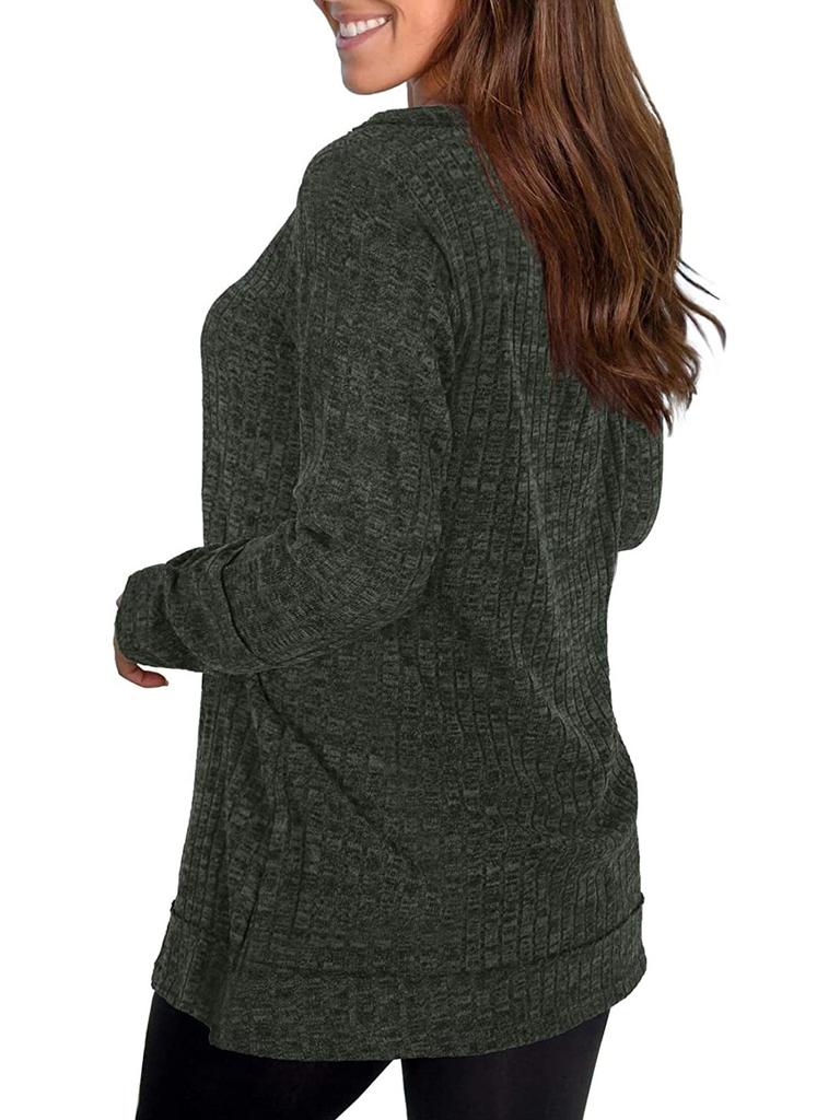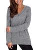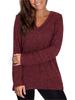 Women T-shirt Long Sleeve Fall Top V Neck Solid Color Casual Loose Blouse Stylish Sweatshirt