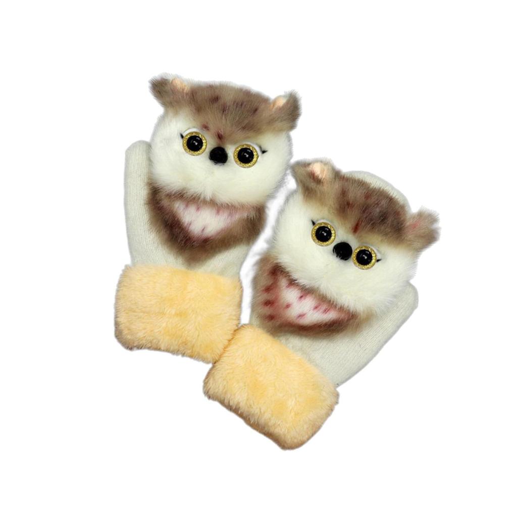 Cute Knitted Winter Warm Mittens for Women Cartoon Full Finger Gloves