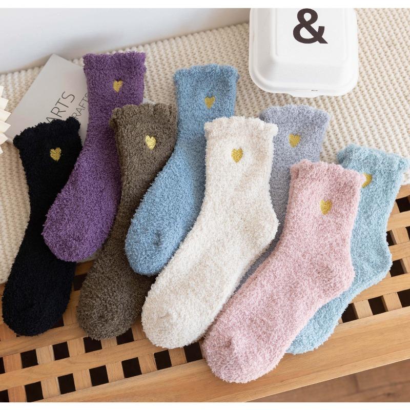 Autumn and Winter Coral Fleece Socks, Thickened Floor Socks, Embroidered Heart-shaped Home Socks, Warm and Soft Sleeping Socks
