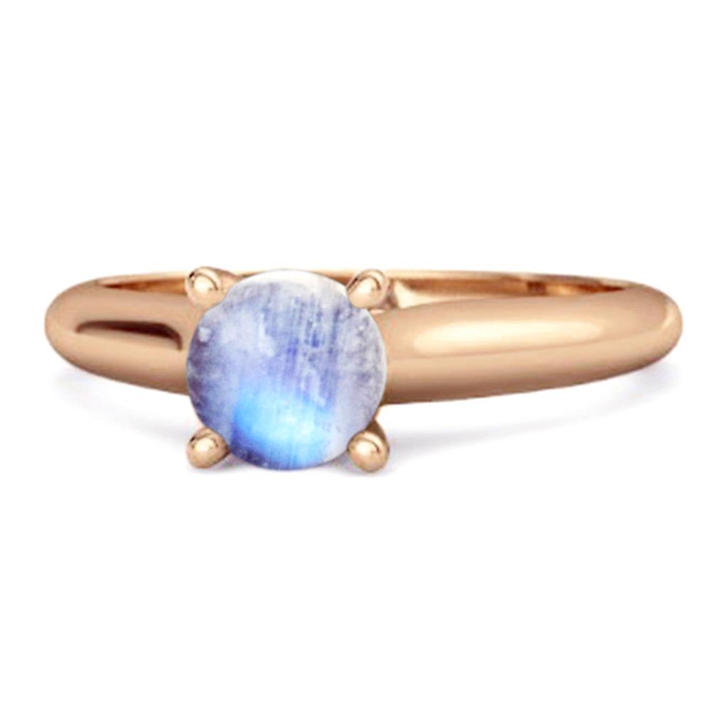Moonstone Round Solitaire Ring -925 Sterling Silver Rose Gold Vermeil