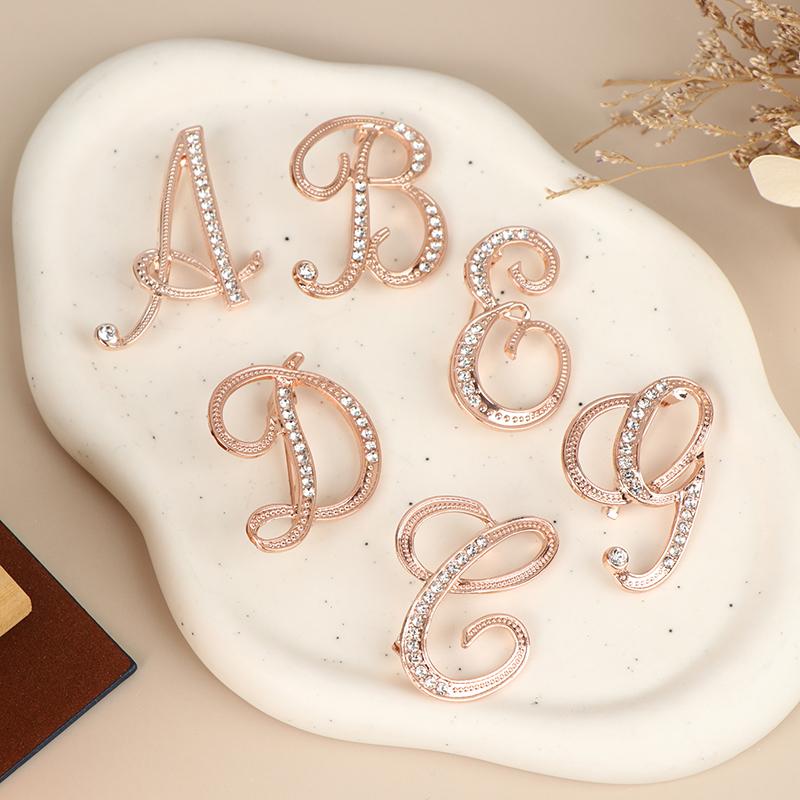 Women Luxury Letter Brooch Pins In Rose Gold Color English Alphabet Pins Cute Jewelry Accessories Gift