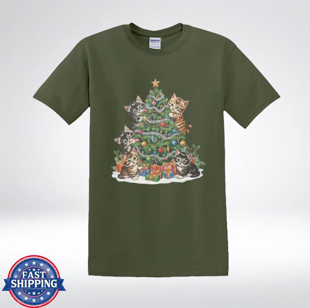 Cute Christmas Kittens Around Tree Holiday Cat Lovers Graphic T-Shirt