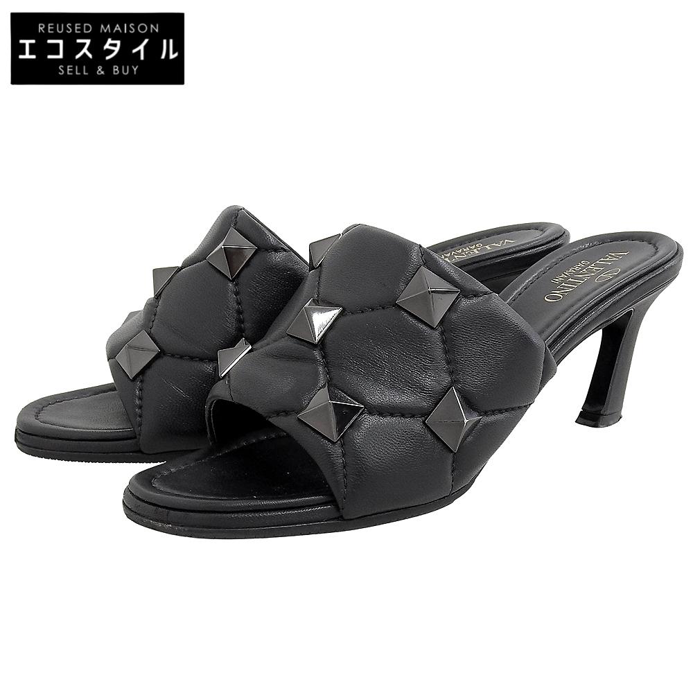 Valentino Garavani Women's Leather Pyramid Studs Open-Toe Heel Sandals, Black, Size 36, VSW BK3 Shoes 36 blackUsed
