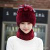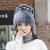 New Women's Rex Rabbit Hair Hat Winter Thickened Warm Fashion Versatile Elastic Fur Woven Hand Sewn Knitted Hat