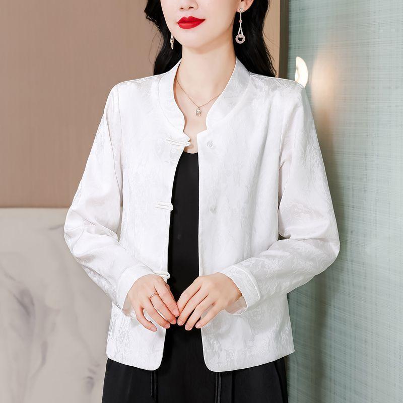 New Chinese Style Stand Collar Plate Button Spring and Autumn Fashionable Casual Jacquard Long-sleeved Top